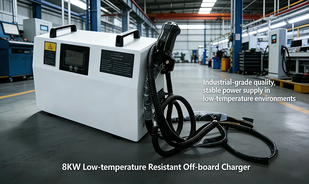 8 кВт төмен температураға төзімді борттан тыс зарядтау құрылғысы төмен температуралы орталар үшін арнайы жасалған жоғары қуатты тәуелсіз зарядтау құрылғысы болып табылады. Оның негізгі функциясы үш фазалы айнымалы ток қуатын тұрақты тұрақты ток қуатына түрлендіру, электр жүк көтергіштері мен жинақтағыштар сияқты өнеркәсіптік жабдықтың қуат батареяларын тиімді зарядтау болып табылады.