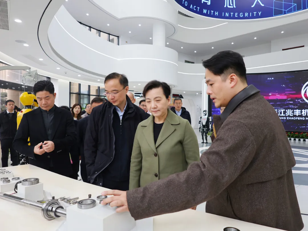 Төраға Ван Вэньсу мен оның делегациясы компанияның өндіріс пен пайдаланудағы, өнім мен технологиялық инновациялардағы, цифрлық-зияткерлік трансформациядағы және басқа да аспектілердегі жетістіктерімен танысу үшін Чжаофэннің цифрлық көрме залын аралады. Олар компанияның жоғары деңгейлі өндіріс саласындағы үздіксіз инвестициялық және интеграцияланған инновациялық мүмкіндіктерін растады және кәсіпорынның цифрлық трансформация мен интеллектуалды жаңартудағы жетістіктері туралы жоғары баға берді.